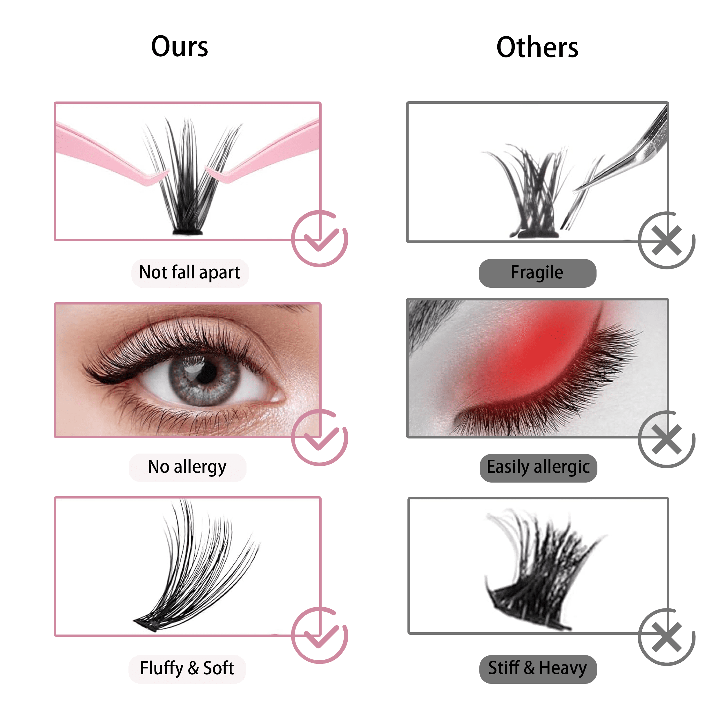 4. Great Quality: My Young cluster lashes in lash extension kit are soft and lightweight, easy to apply even for beginners. Tiny pores on the cluster lashes’ surface to absorb more glue and last longer. Individual lashes in eyelash extension kit have great quality, looks real and natural. You can enjoy applying lashes with this diy lash extension kit.