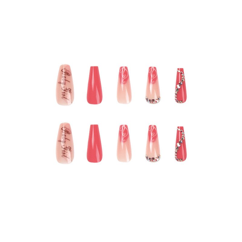 Home > 24Pcs Ballet Full Cover Fake Nails Flower Butterfly Design with Rhinestones False Nails Wearable Press on Nails Manicure Tips