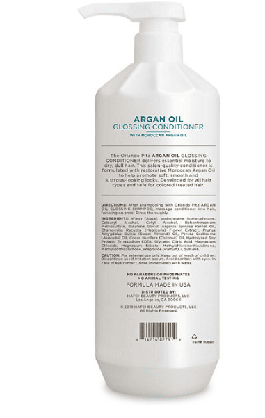 The Orlando Pita Argan Oil Glossing Conditioner delivers essential moisture to dry; dull hair. This salon-quality conditioner is formulated with restorative Moroccan Argan Oil and Soy Protein to help promote soft; smooth and lustrous-looking locks.